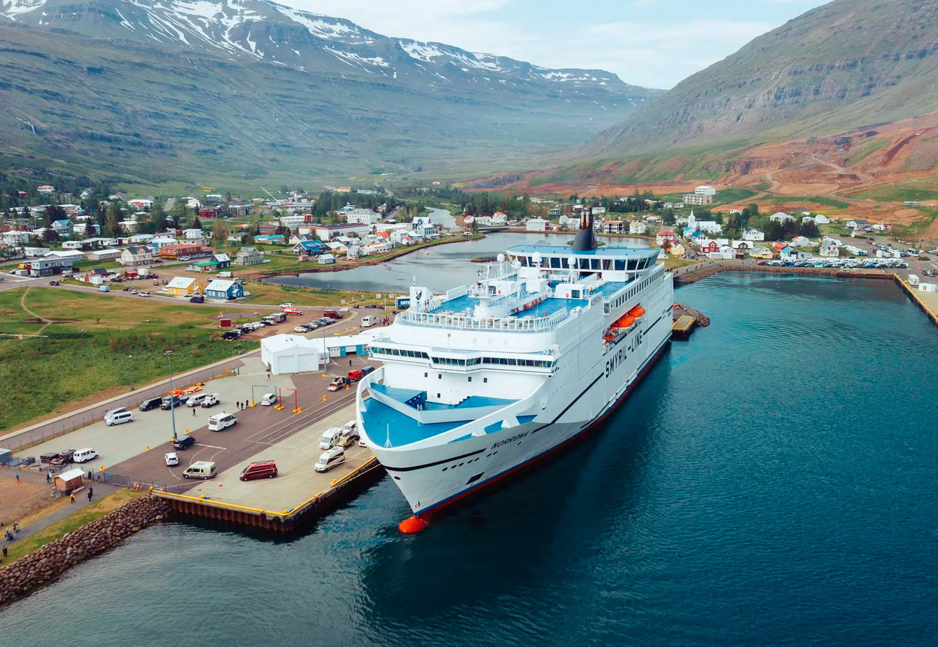 Norröna leggur að í Seyðisfirði á Austurlandi